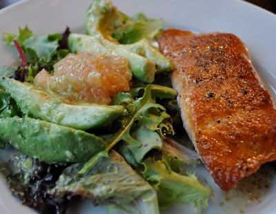 You’re going to have to trust me that this salad is fabulous. The picture looks kind of gross, I know. Like raw chicken….I made the salad and then some things came up and it had to sit in the fridge for about an hour. The acid broke down the avocado and the grapefruit got mushed up. But it was still so so good. You won’t let that happen. We had it with Simple Salmon.