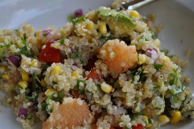 Place red onion, grapefruit, cilantro, bell pepper, avocado and shucked corn kernels in a large bowl. Toss to combine.