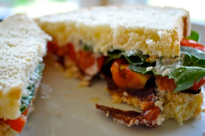 Actually, BLTs with vine ripe tomatoes, fresh bakery bread I picked up at the Sunday morning Farmers’ Market at the Botanical Gardens, Arkansas Petit Jean bacon, arugula, and garlic aioli. Here’s the recipe, just leave off the egg. Or use it. It’s really good both ways.