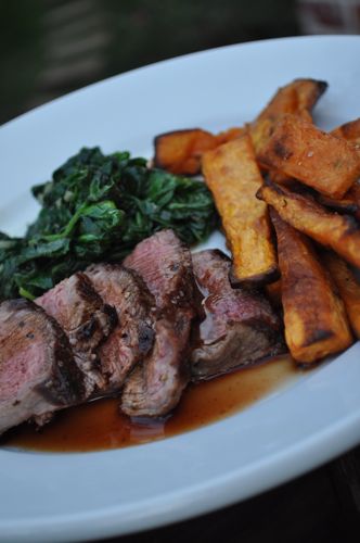 Heat olive oil in a skillet until hot. Add the garlic and saute for about a minute, but don’t let it brown. Add the red pepper flakes and then the spinach. Toss spinach until it wilts and then add salt.