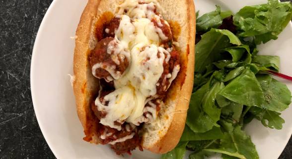 This was a hit with the whole family and requires only assembly, no cooking! Look in your store for meatballs that don’t have many ingredients and good quality marinara.